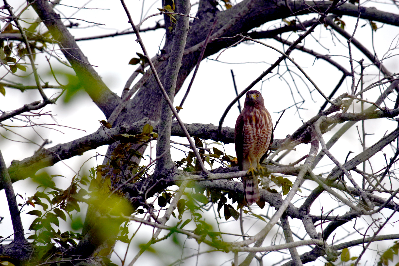 Aguilucho lagunero parado sobre un manglar esperando a emprender el vuelo.